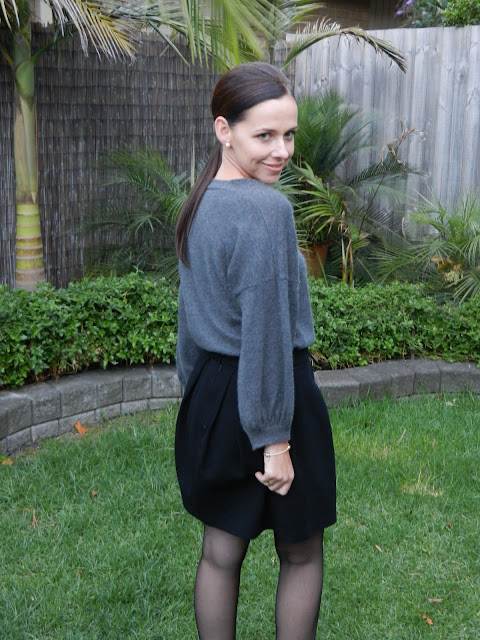 The venue we were going to for dinner this cold evening, turned out to be much more warmer than I had thought because of its glass domed roof. So, I ended up sweltering under this fine gauge cashmere, but I didn't mind because I felt feminine, flirty and had heaps of fun!!